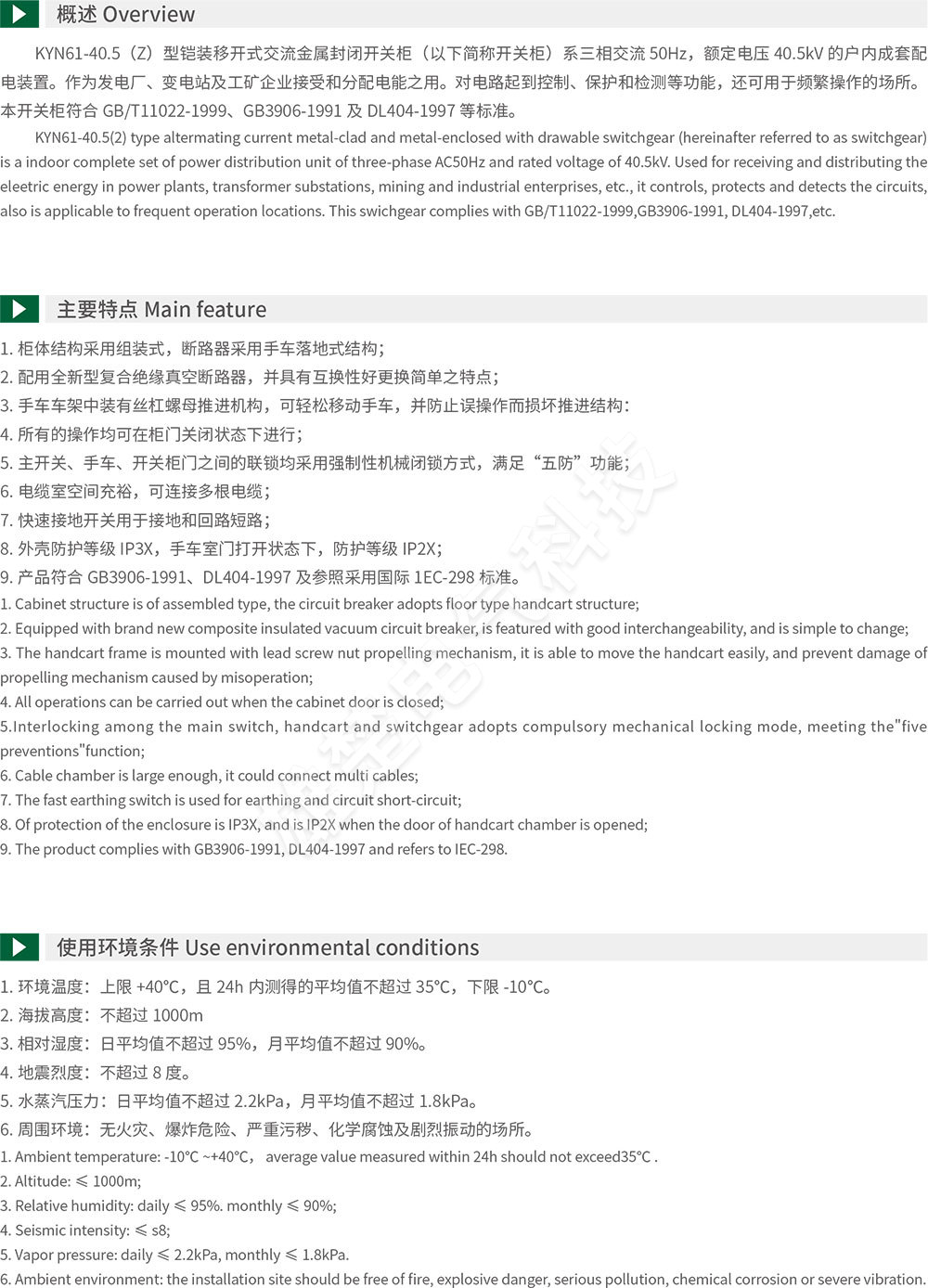 KYN61-40.5(Z) Armored removable AC metal enclosed switchgear