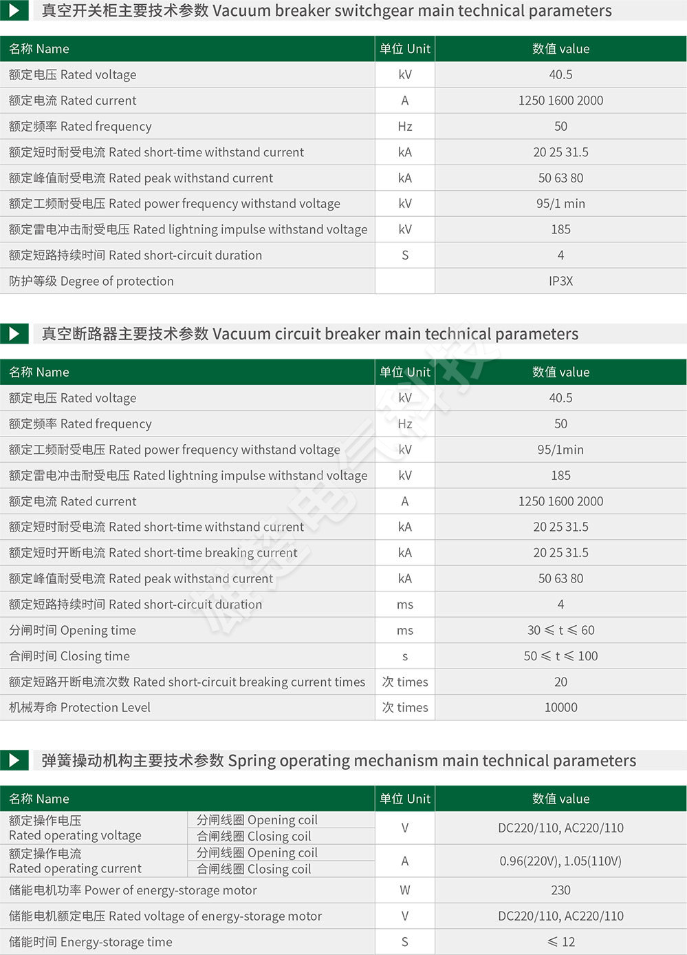 Indoor and outdoor high voltage vacuum circuit breaker